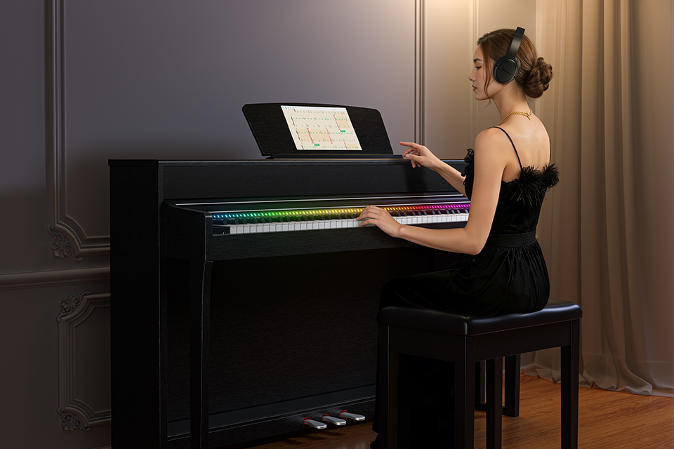 AI智能教學為音樂愛好者提供更簡單有趣的學琴體驗,一臺能讓全家人都會彈琴的智慧鋼琴。